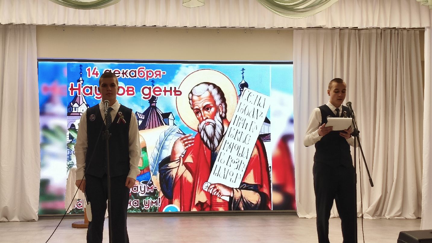 Началось все с инсценировки, которая оживила образ старца Наума. Затем наши ведущие провели для ребят настоящее историческое путешествие. Мы узнали, что этот день имеет глубокие корни и играл особую роль в просвещении наших предков. Оказалось, что раньше учебный год начинался именно 14 декабря, и этот день был настоящим праздником посвящения в ученики. Ребята с интересом слушали о том, как непросто было осваивать грамоту в старинных школах. Чтобы сделать рассказ еще более наглядным и запоминающимся, мы посмотрели познавательную презентацию и послушали проникновенные стихи.
