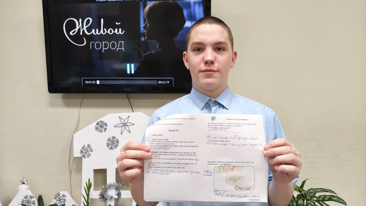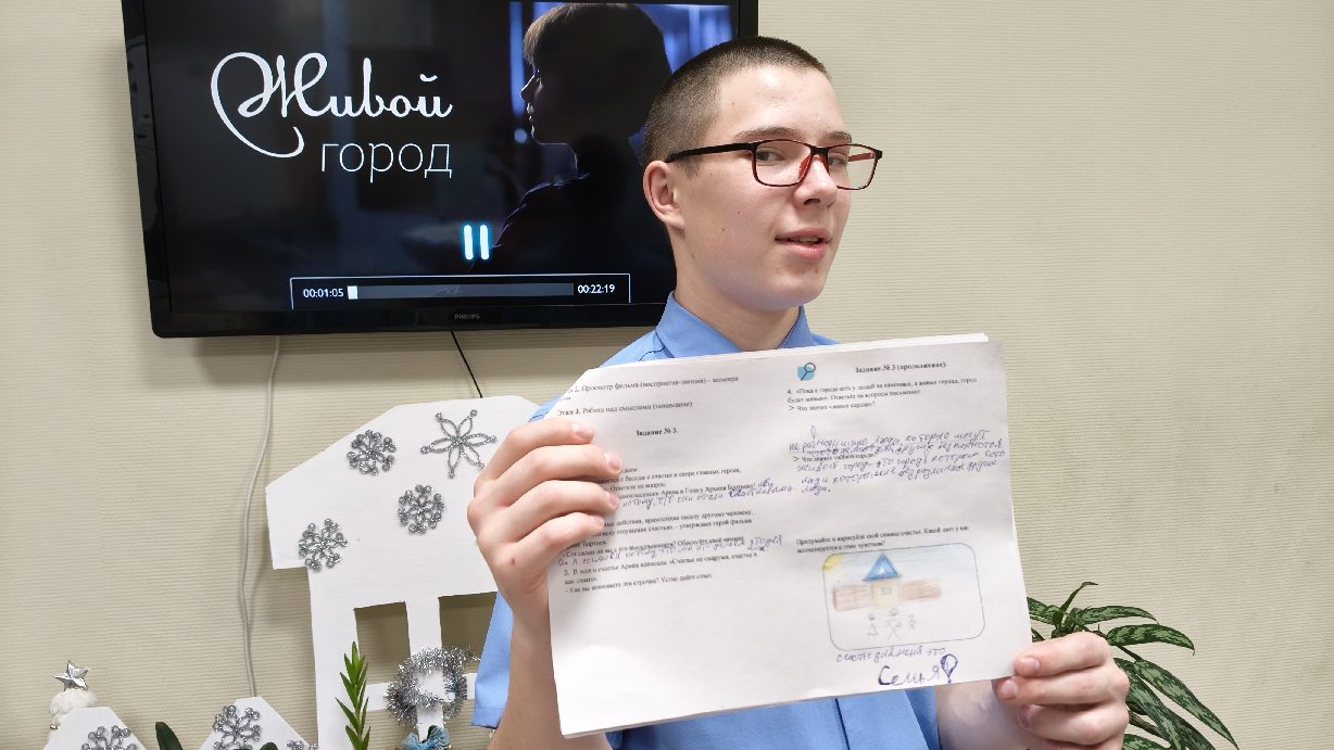 Что такое счастье? Кто или что делает человека счастливым? На эти и другие вопросы воспитанники отвечали на воспитательском часе до и после просмотра короткометражного фильма «Живой город» в рамках проекта «Киноуроки в школах России».