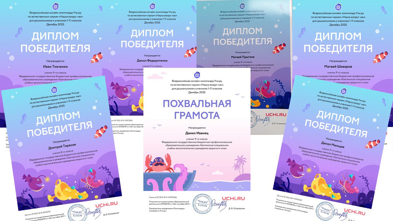29 декабря 2025 года на платформе Учи.ру завершилась Всероссийская олимпиада по естественным наукам "Наука вокруг нас" для 1-11 классов, в которой приняли участие обучающиеся Калтанского СУВУ.