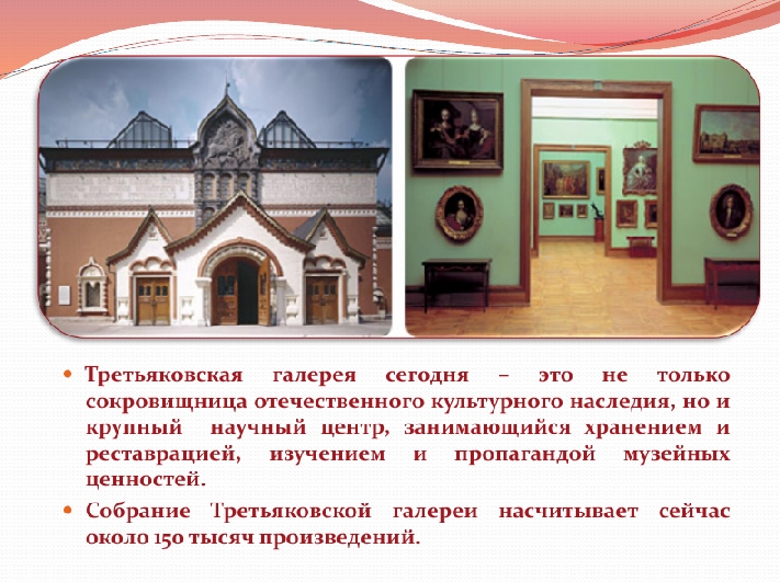 Особое внимание было уделено Третьяковской галерее, как одному из самых значимых музеев страны. Учащиеся узнали об истории её создания, основателе Павле Михайловиче Третьякове, его вкладе в развитие русского искусства. Были рассмотрены ключевые произведения галереи, такие как «Явление Христа народу» Александра Иванова, «Утро стрелецкой казни» Василия Сурикова, «Алёнушка» Виктора Васнецова. Обсуждались сюжеты картин, их символика, а также биографии художников.
