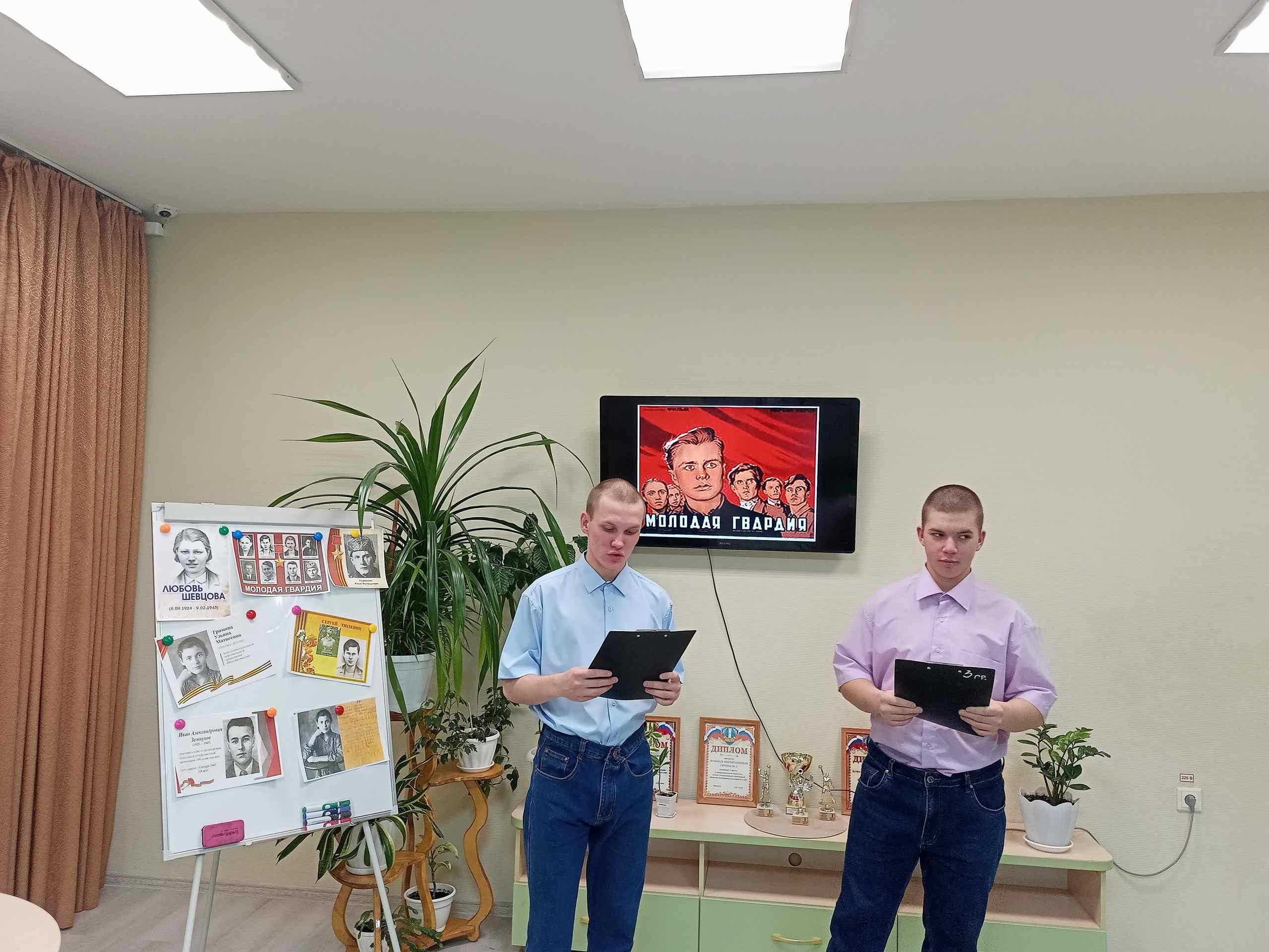13 февраля в рамках месячника патриотического воспитания из цикла занятий по подготовке к конкурсу среди групповых коллективов «День защитника Отечества» на базе онлайн тренажёра Музея Победы прошёл воспитательский час по теме: «Подпольная организация «Молодая гвардия»». Ребята познакомились с историей «Молодой гвардии», которая была создана во время оккупации маленького шахтерского городка и насчитывала более 100 участников – юношей и девушек. Узнали, как мужественно и героически юные патриоты сражались с врагом, организовывая диверсии, распространяя листовки об обстановке на фронте, спасали мирных жителей от жестокости гитлеровцев, делая свой вклад в Великую Победу.Вниманию была предоставлена презентация «Организаторы Краснодонского комсомольского подполья», видеоролик «Молодая гвардия».