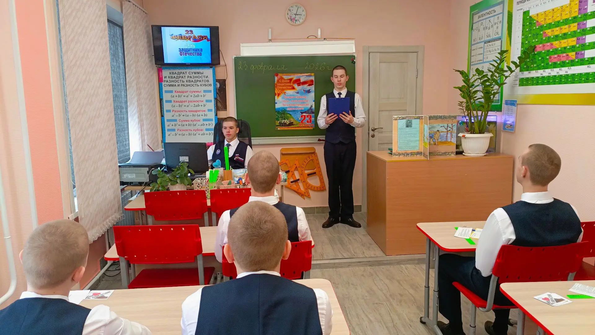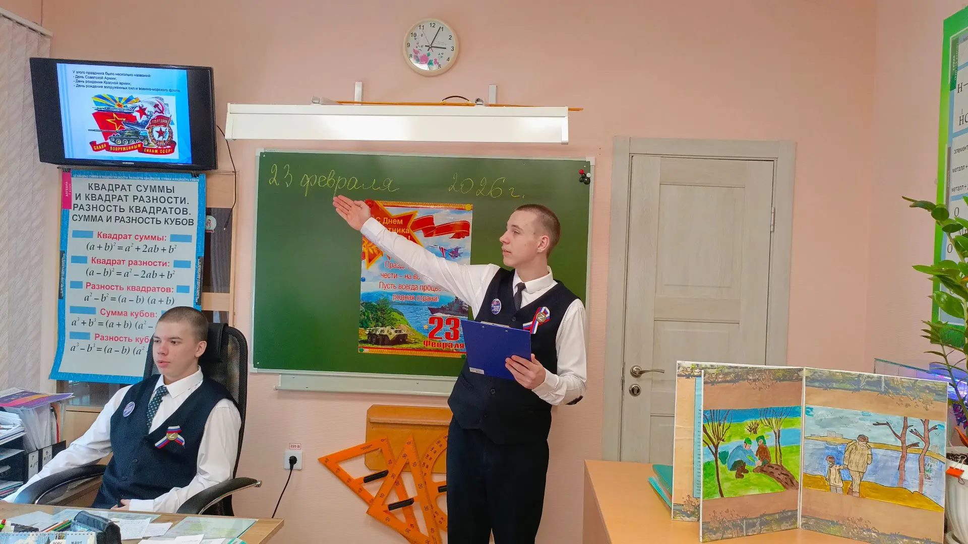 23 февраля в Калтанском СУВУ прошёл классный час, посвящённый празднованию Дня защитника Отечества «На службе у Родины». Воспитанники познакомились с историей праздника и важными жизненными ценностями: уважении к истории своей страны, осознании долга и ответственности, а также развитии навыков командной работы. Для подростков, оказавшихся в сложных жизненных обстоятельствах, крайне важно иметь перед собой примеры для подражания. Празднование 23 февраля предоставило возможность обсудить качества настоящего защитника. Речь шла не только о физической силе, но и о внутренней стойкости, честности и верности своим словам. Классный час начался с краткого рассказа об истории праздника, который педагоги представили в доступной форме. Они рассказали о том, почему этот день важен, какие подвиги совершали наши предки и почему необходимо помнить об их подвигах. Педагоги подчеркнули, что защищать можно не только с помощью оружия, но и проявляя заботу о других, отстаивая справедливость и помогая тем, кто в этом нуждается. Учащиеся активно делились примерами мужества, как из истории, так и из современной жизни. Они вспомнили о пожарных, спортсменах, которые преодолевали трудности на своём пути к успеху, а также о других людях, чьи поступки вызывают уважение. Мероприятие прошло успешно: даже те, кто обычно проявляет меньшую активность, приняли участие и проявили интерес. Многие ребята ощутили гордость за свою страну и поняли, что быть защитником — это важная и ответственная роль, к которой стремится каждый.