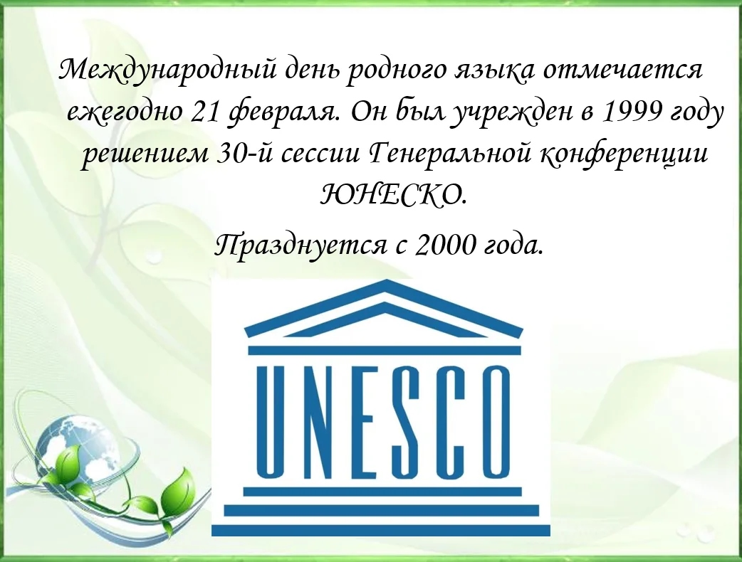 21 февраля для воспитанников Калтанского СУВУ прошло мероприятие, посвященное Международному дню родного языка. Этот день, отмечаемый ежегодно по инициативе ЮНЕСКО, призван содействовать языковому и культурному разнообразию и поощрять многоязычие. Воспитанники учреждения приняли активное участие в увлекательном путешествии по многогранному миру родных языков. В начале мероприятия ведущие рассказали об истории возникновения Международного дня родного языка и его значении для сохранения уникальных культур и традиций народов мира.