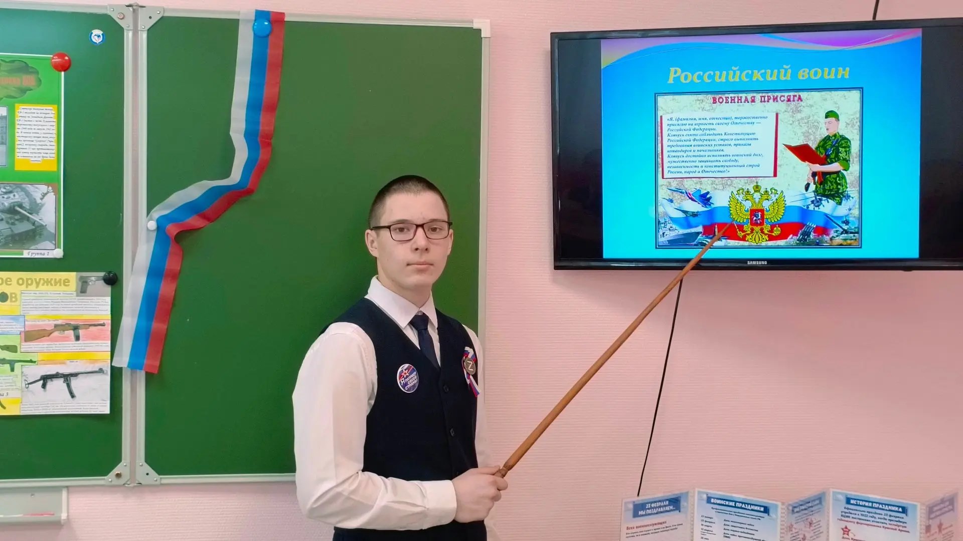 Ребята узнали об истории праздника, его значении и традициях. Особое внимание было уделено подвигам советских солдат и офицеров во время Великой Отечественной войны. Александр Сергеевич с помощью мультимедийных презентаций, видеоматериалов и интерактивных заданий показал, какой ценой была завоевана Победа, и какие жертвы принес наш народ ради мирного неба над головой. Учащиеся включились в обсуждение, задавали вопросы и делились своими мыслями.