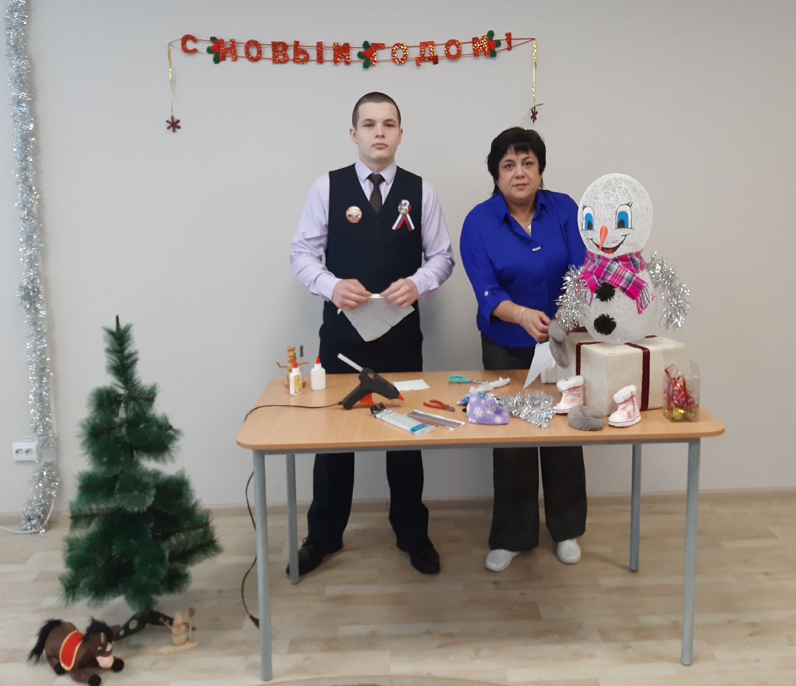 Социальный педагог Килина Гульнора Одинаевна вместе с воспитанником подготовили снеговика для предстоящих новогодних праздников. Изготовление проводилось в оригинальной технике, известной как «Нитяной декор». Сначала воздушный шар покрывается слоем клея, поверх шара аккуратно укладываются нити, образуя рисунок. Узоры передают объём, фактурность и декоративность готовому изделию, создавая основу фигуры, потом отдельно создавались остальные элементы конструкции. Завершающим этапом стало праздничное оформление - снеговику повязали яркий шарф и надели уютные сапожки.