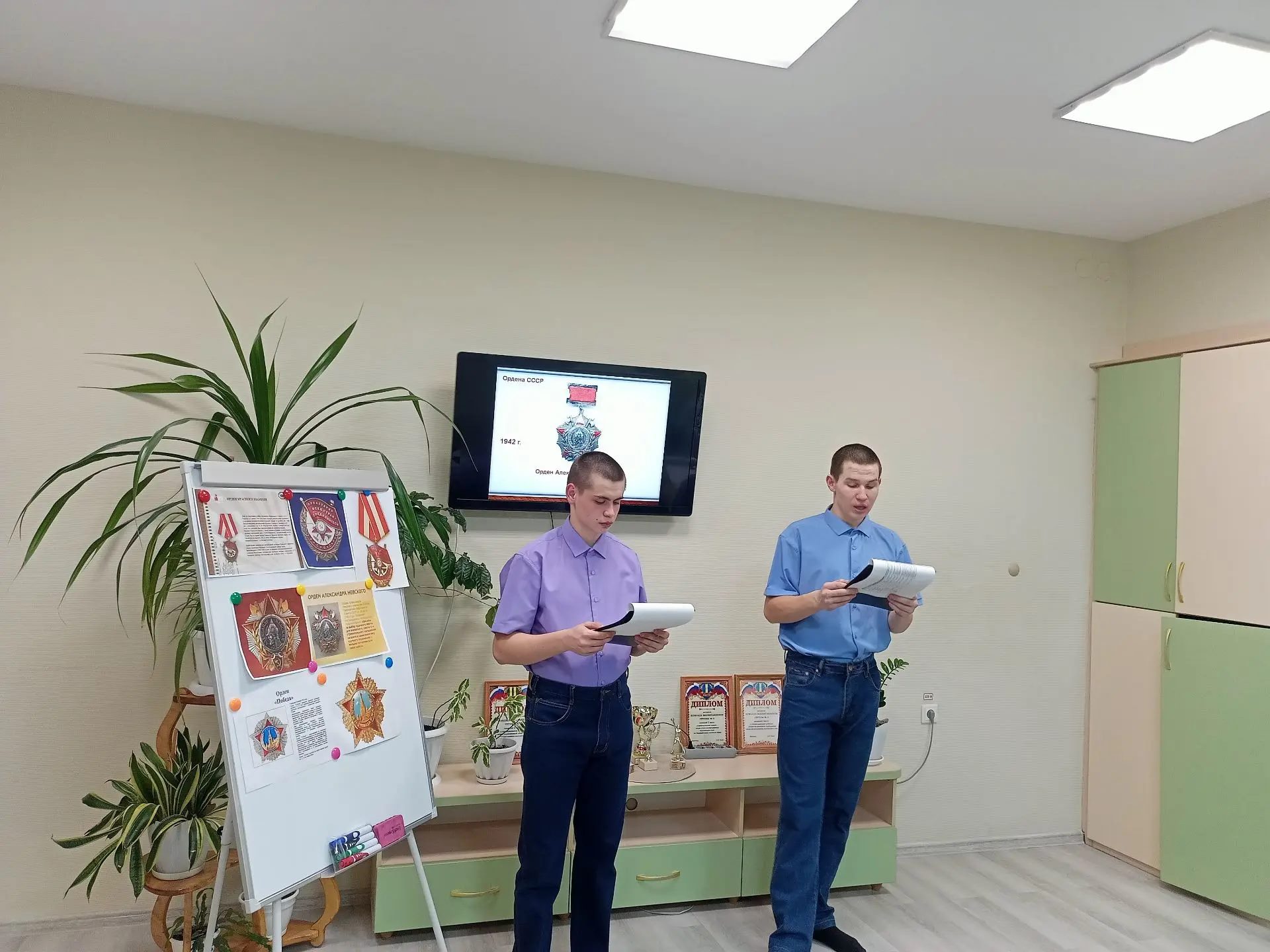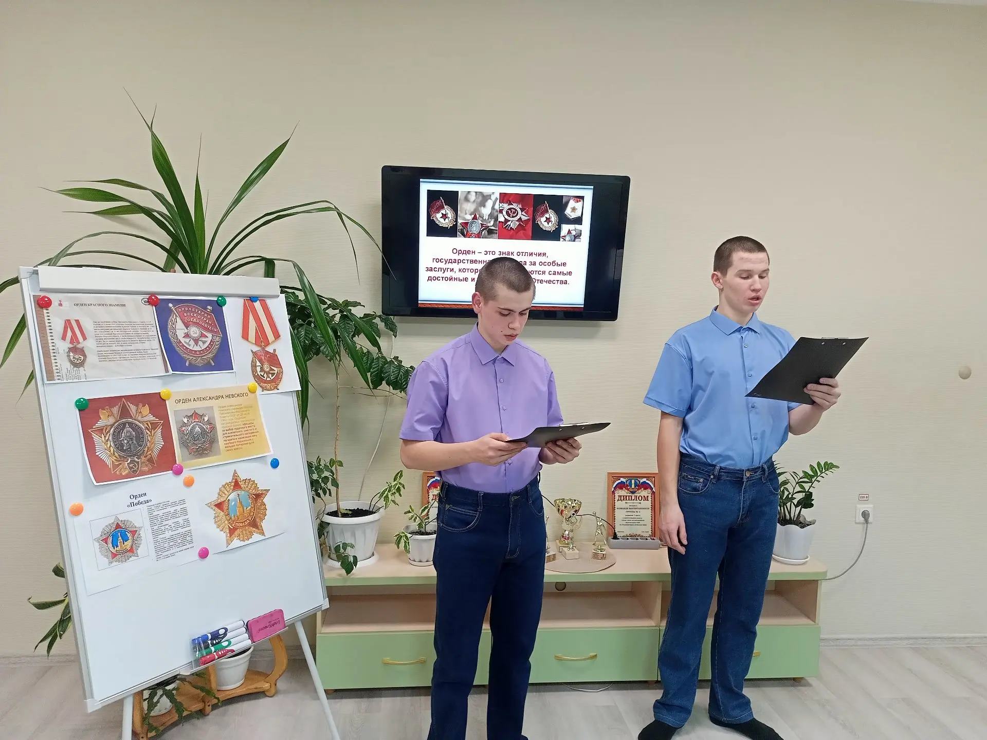 - Презентацию с визуальными материалами (изображения орденов, исторические карты, портреты кавалеров). В презентации были освещены ключевые этапы развития наградной системы России, особенности каждого из трёх орденов.