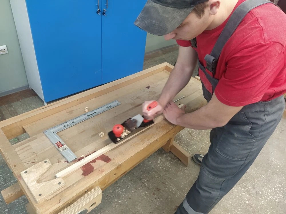 За два года, проведенных в стенах нашего учреждения, Максим освоил сразу две востребованные специальности: "Слесарь механосборочных работ" и "Столяр строительный". И вот, в отличие от большинства своих одногруппников, для которых волнительный день сдачи квалификационного экзамена еще впереди, Максим уже прошел это испытание.