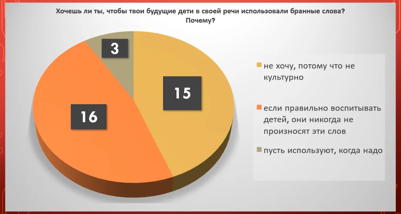 В ходе мероприятия воспитанники познакомились с историей возникновения мата на Руси, какое влияние на здоровье человека оказывает бранная речь. Были разобраны ситуации, с точки зрения психологии, почему человек употребляет в своей речи нецензурную лексику. Пришли к выводу, что многие люди не умеют владеть своими эмоциями, не могут подобрать правильные слова в момент агрессии, низкий словарный запас не позволяет выразить недовольство литературными словами (хотя бытует мнение, что бранными словами пользуются, отнюдь не безграмотные люди с низким словарным запасом, а, наоборот, те, кто владеет филигранно русским языком), а срываются на сквернословие, но и, конечно, нельзя не брать во внимание и окружение подростков, которое, зачастую, разговаривает только, используя экспрессивные слова и выражения. Многие считают мат хорошим средством эмоциональной разрядки, оказывающим помощь в снятии стресса.