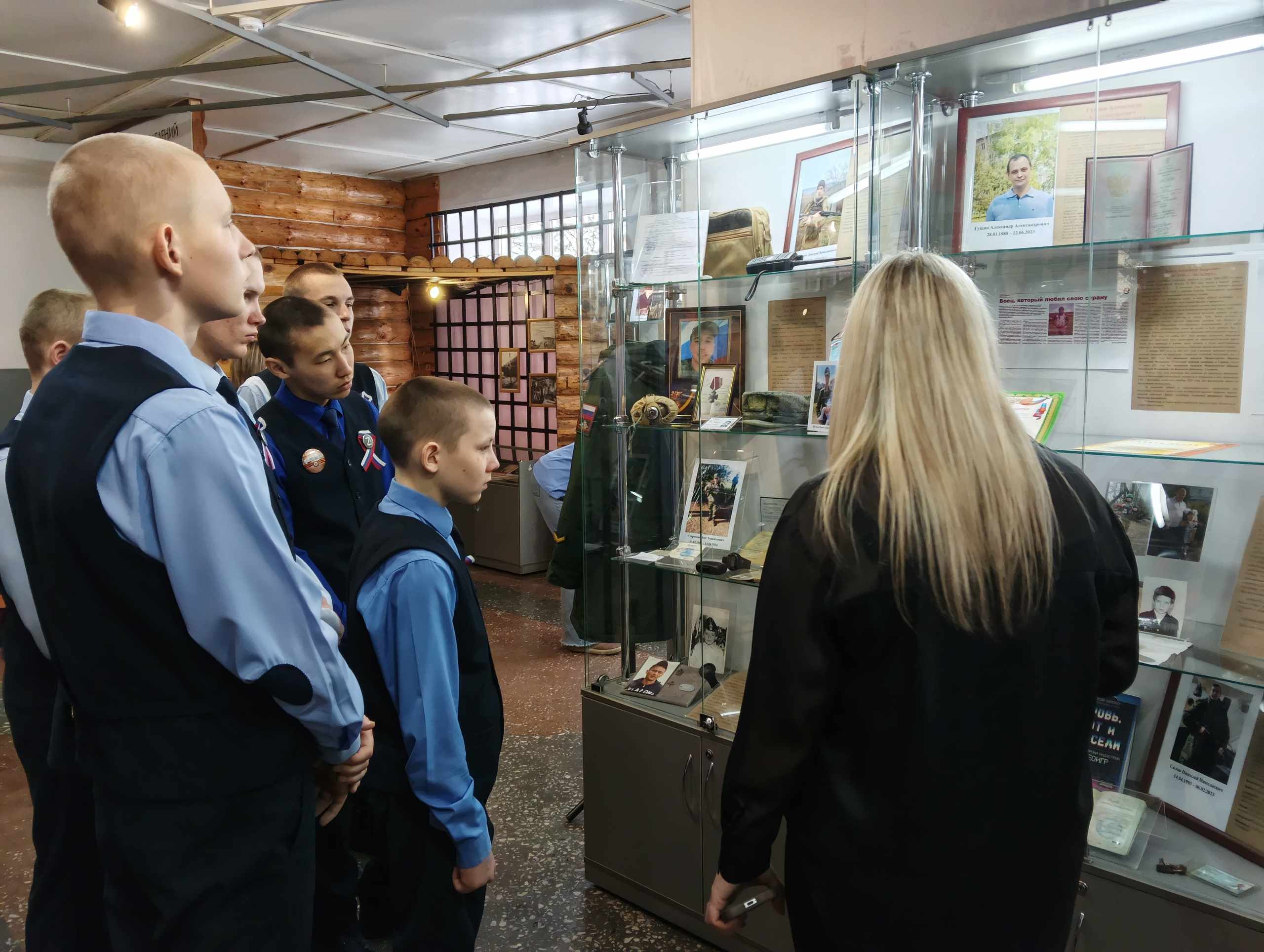 Завершился урок уникальной выставкой, где воспитанники могли ознакомиться не только с биографиями военнослужащих, но и увидеть их фотографии, документы и личные вещи, оставшиеся в память о погибших героях. Биографии, представленные на выставке, стали живыми свидетелями героизма, показывая реальные лица и судьбы тех, кто защищал Родину, оставив глубокий след в сердцах ребят. В ходе беседы они узнали, какую помощь и поддержку оказывают местные жители военнослужащим на линии фронта.