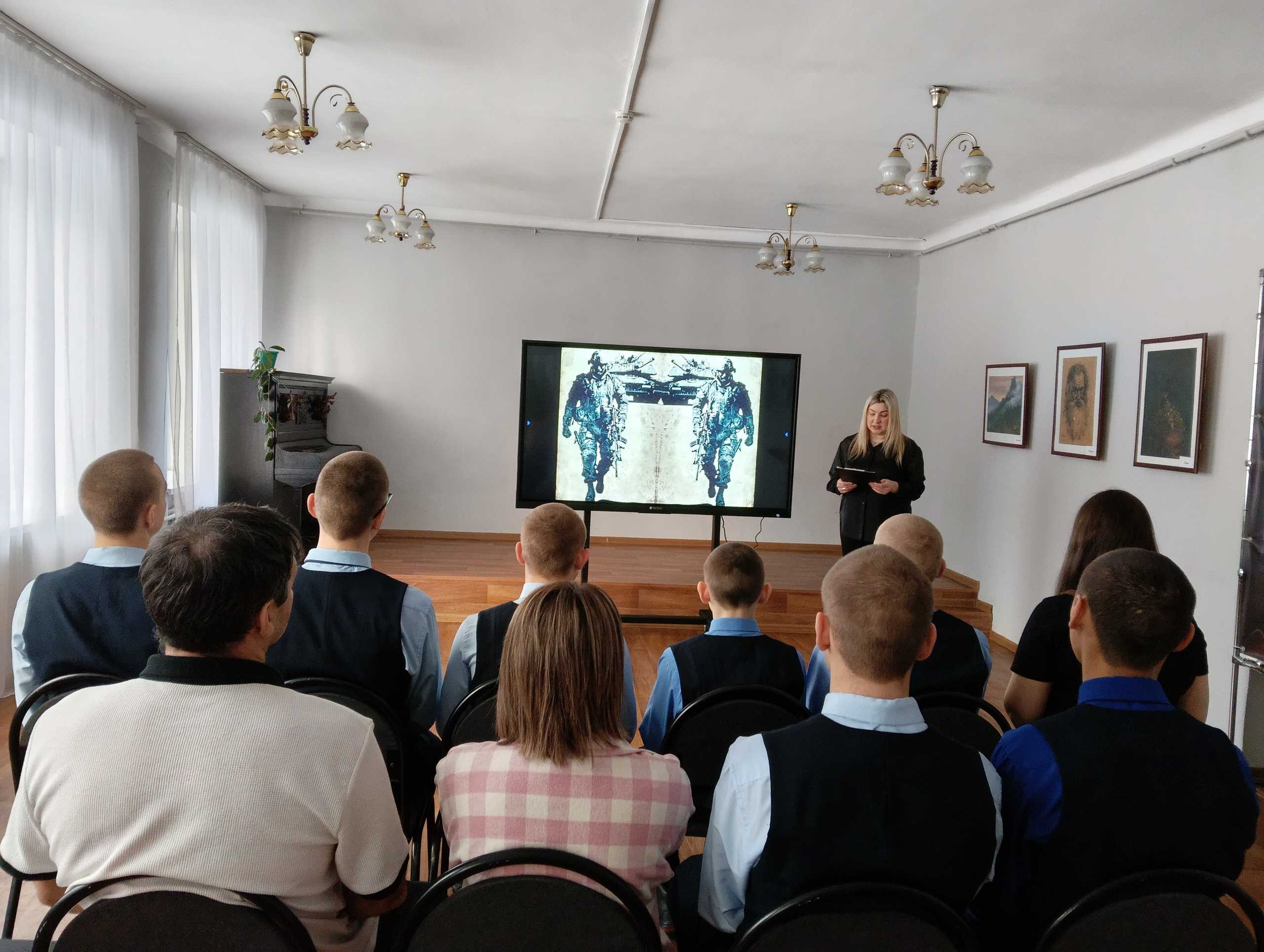 12 февраля 2026 года Осинниковский краеведческий музей вновь открыл свои двери для воспитанников Калтанского СУВУ. Младший научный сотрудник музея Демина Ксения Олеговна провела для гостей особый урок мужества «Герои СВО», посвященный землякам, погибшим во время специальной военной операции.