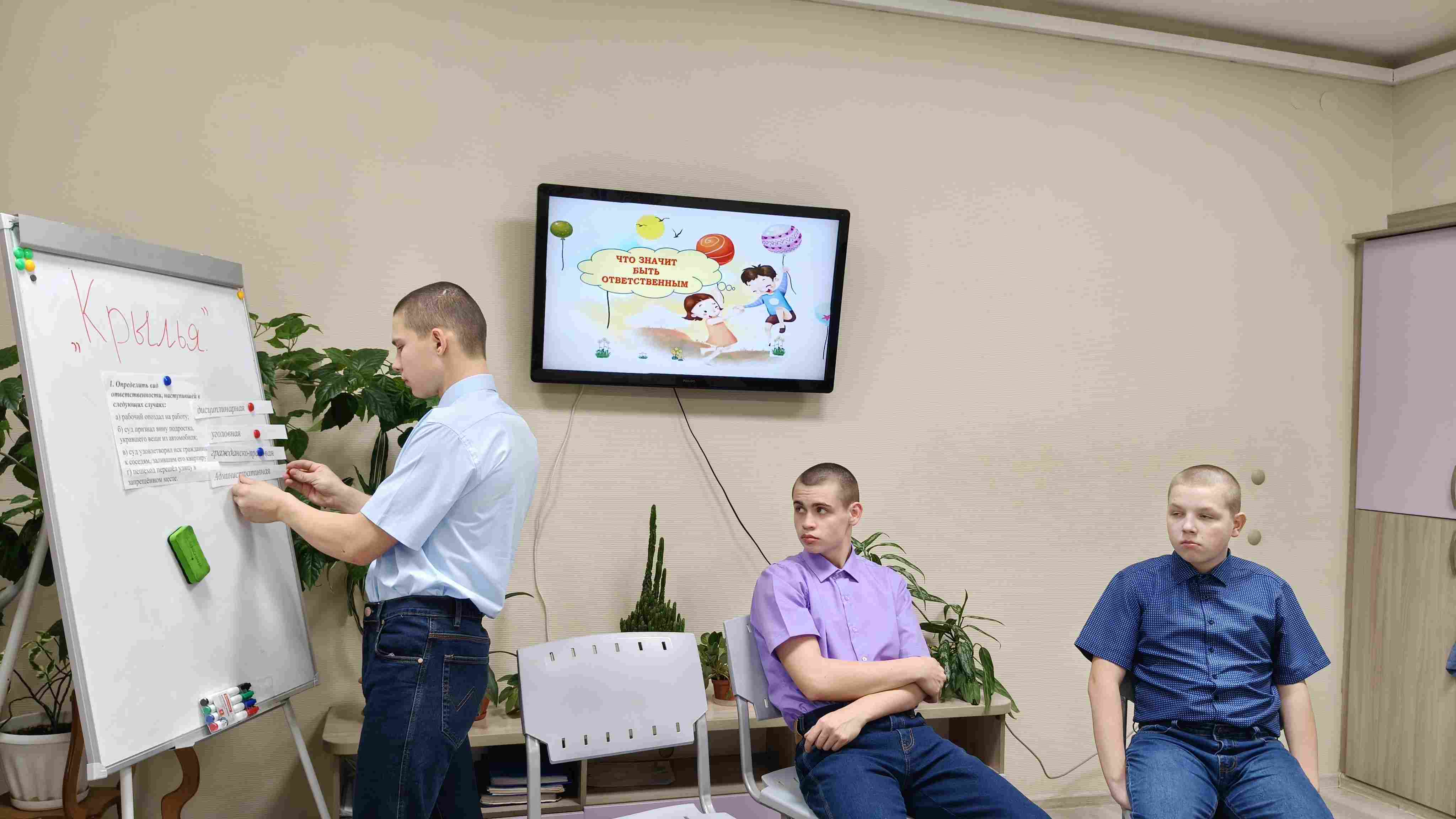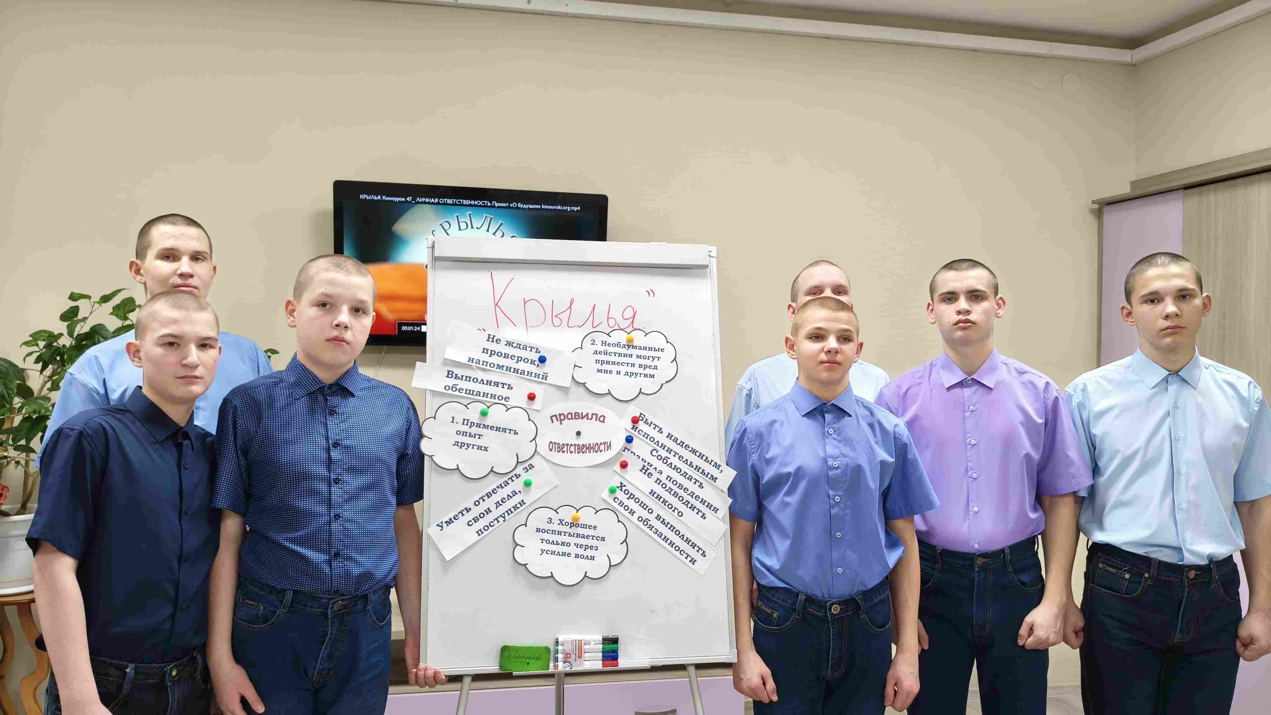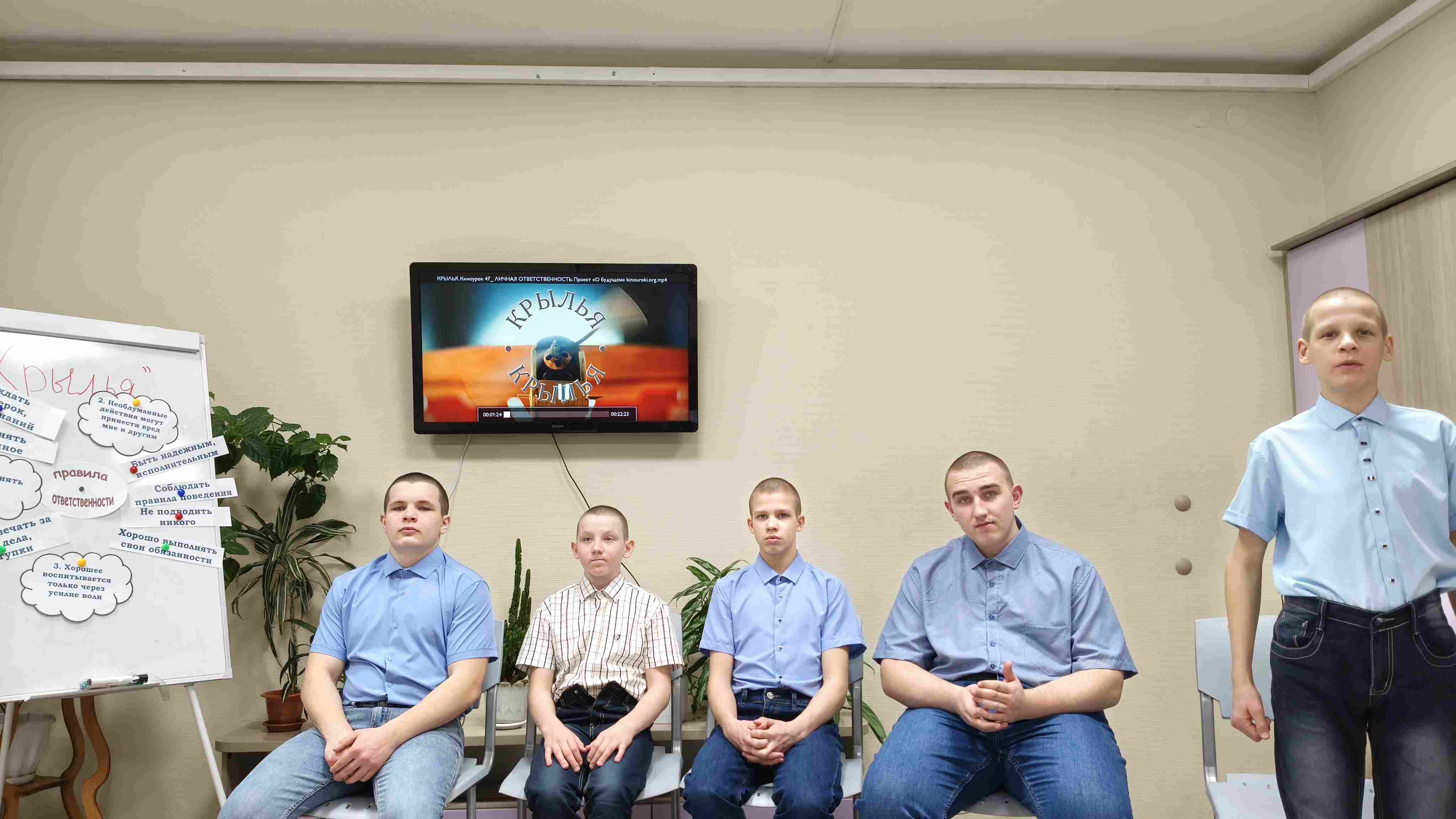 Целью просмотра фильма «Крылья» является раскрытие понятия «личная ответственность». Перед началом фильма ребята поработали над понятием «ответственность». Ответили на вопрос, какая бывает ответственность: гражданская, уголовная, административная, дисциплинарная. Но главной выделили – нравственную ответственность. Выработали правила ответственности, которые, как оказалось, самые простые, чтобы окружающие считали тебя ответственным человеком, нужно: соблюдать правила поведения, выполнять обещанное, уметь отвечать за свои дела и поступки, не ждать проверок и напоминаний, а выполнять четко свои обязанности, не подводить никого, быть надежным исполнителем. А также три правила, которые говорят о том, как же выработать эту самую ответственность: применять положительный опыт других, необдуманные действия могу принести вред, тренировать волю.