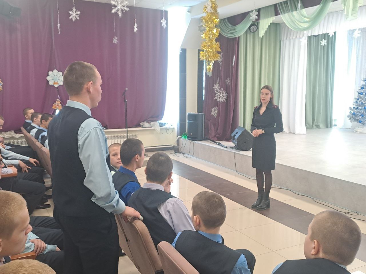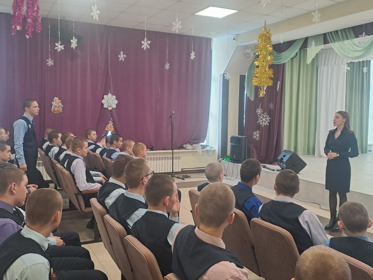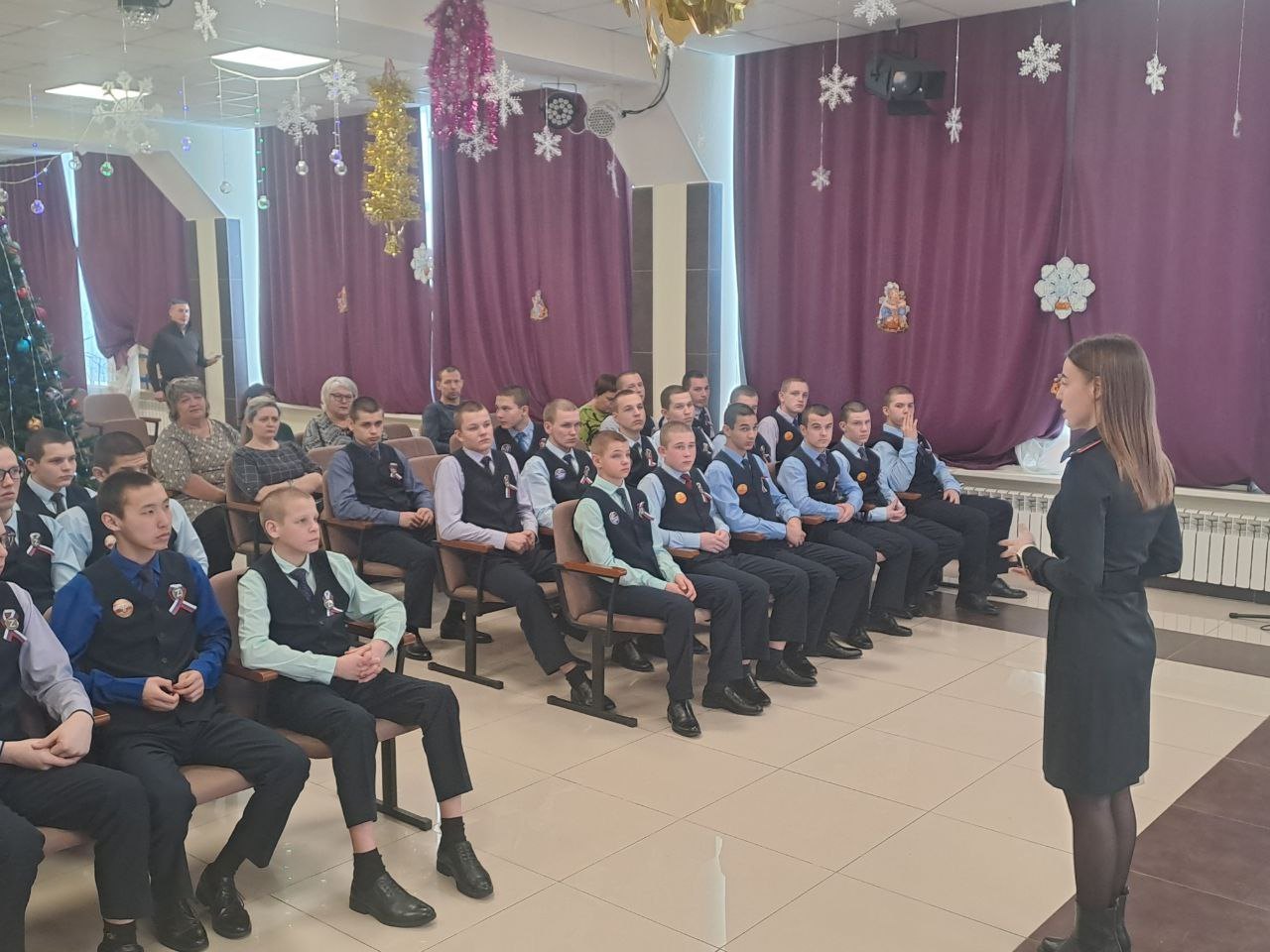 Начальник на ст. Осинники Новокузнецкого ЛО МВД России майор полиции Скрынников О.А. и инспектор ПДН ЛПП на ст. Осинники Новокузнецкого ЛО МВД России лейтенант полиции Черникова С.А. провели с воспитанниками Калтанского СУВУ профилактическую беседу на тему «Совершение актов терроризма, диверсий поступления информации посредством рассылки в интернете, призывающих к противоправным деяниям».