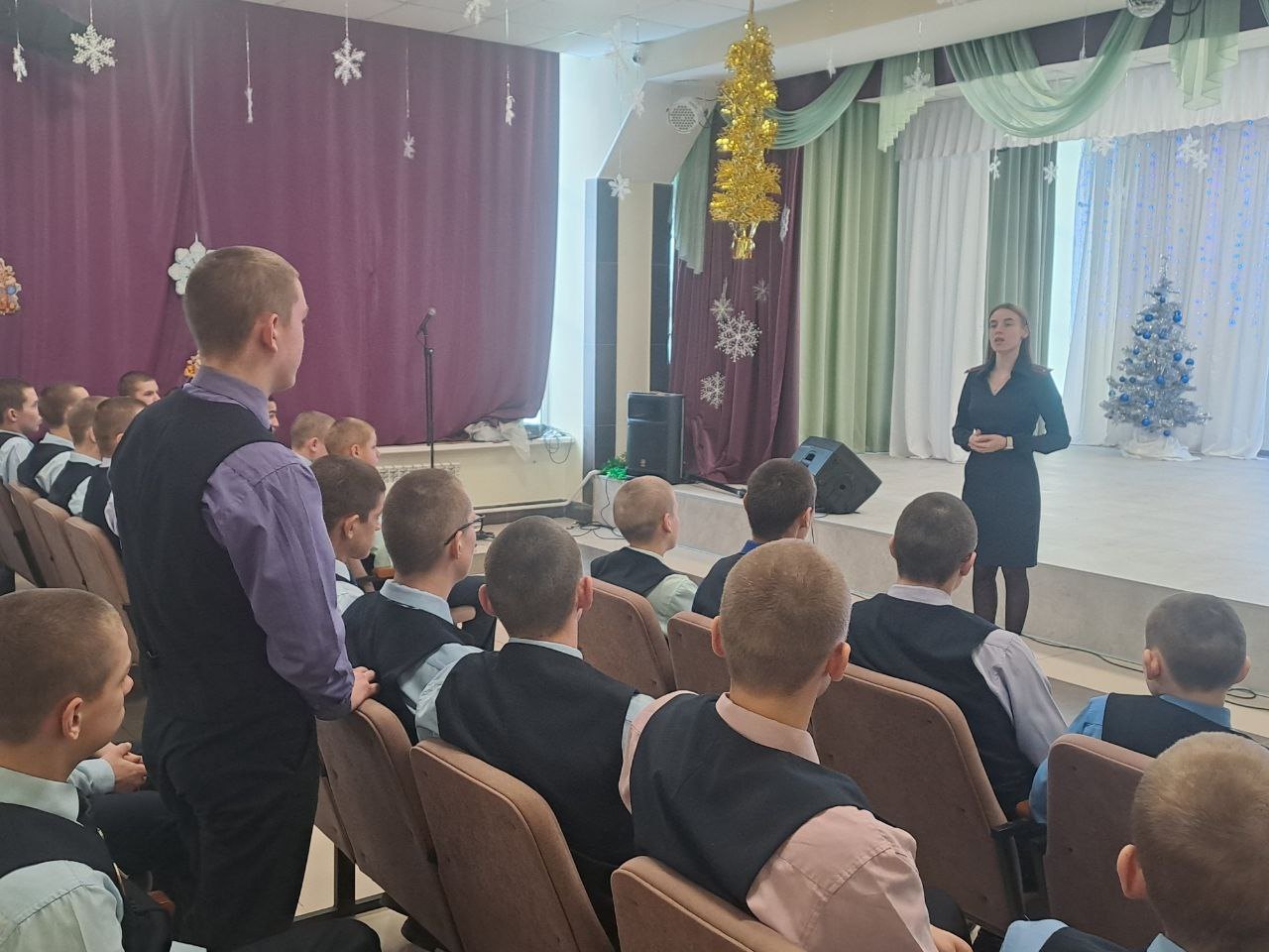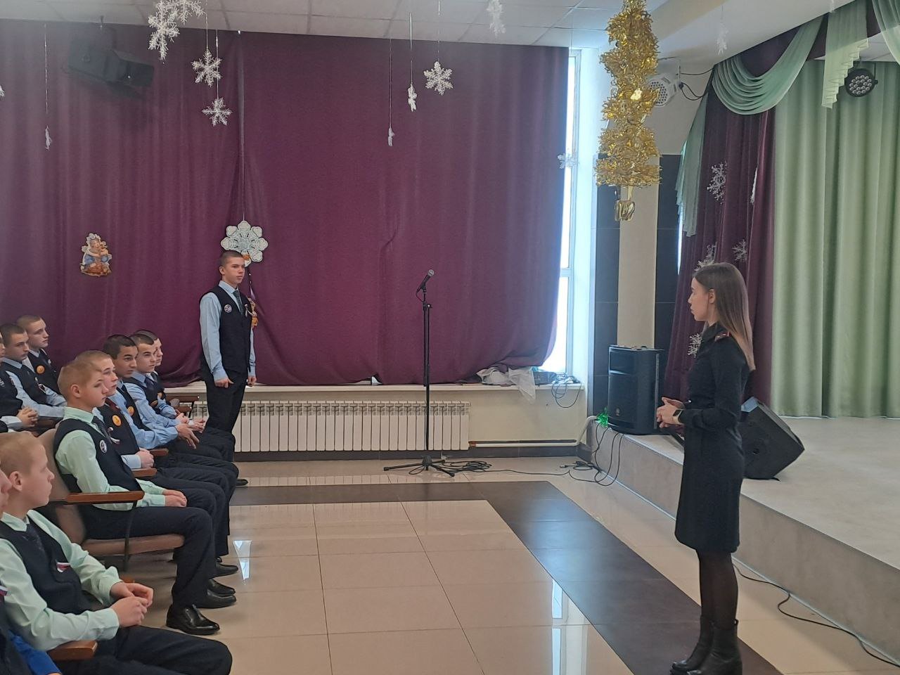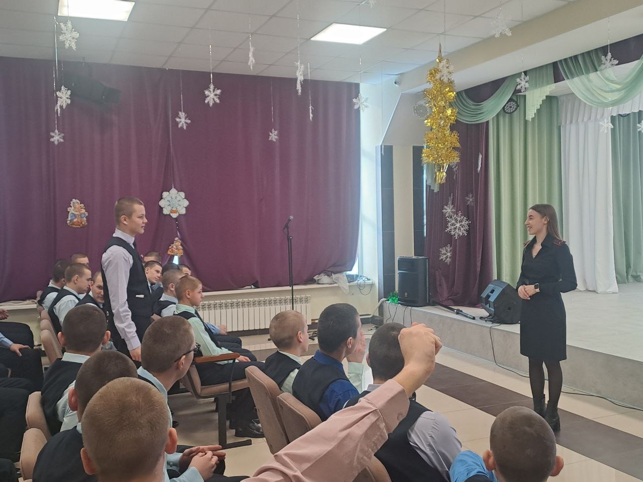 Начальник на ст. Осинники Новокузнецкого ЛО МВД России майор полиции Скрынников О.А. и инспектор ПДН ЛПП на ст. Осинники Новокузнецкого ЛО МВД России лейтенант полиции Черникова С.А. провели с воспитанниками Калтанского СУВУ профилактическую беседу на тему «Совершение актов терроризма, диверсий поступления информации посредством рассылки в интернете, призывающих к противоправным деяниям».