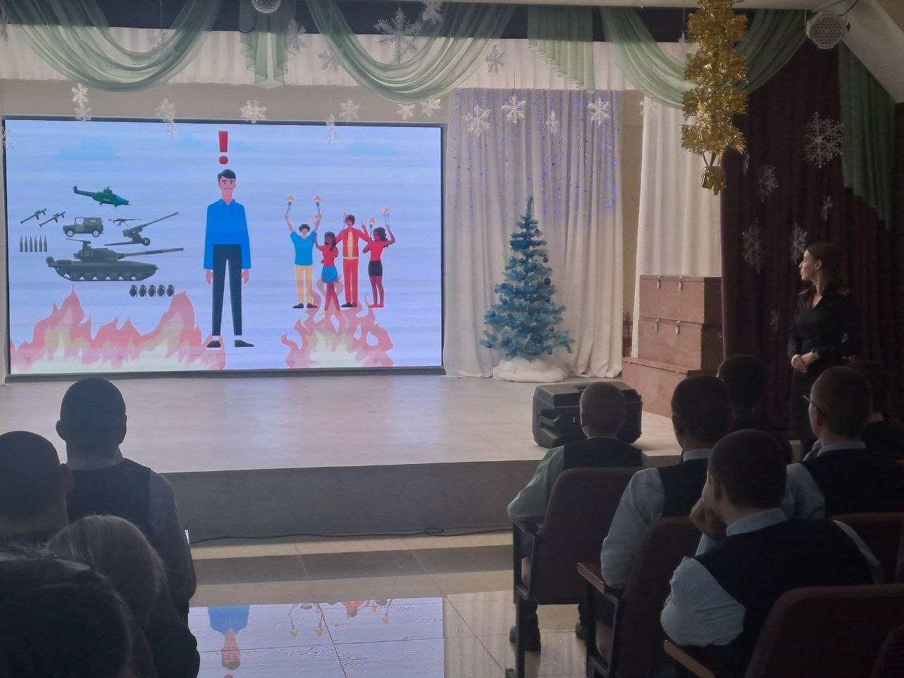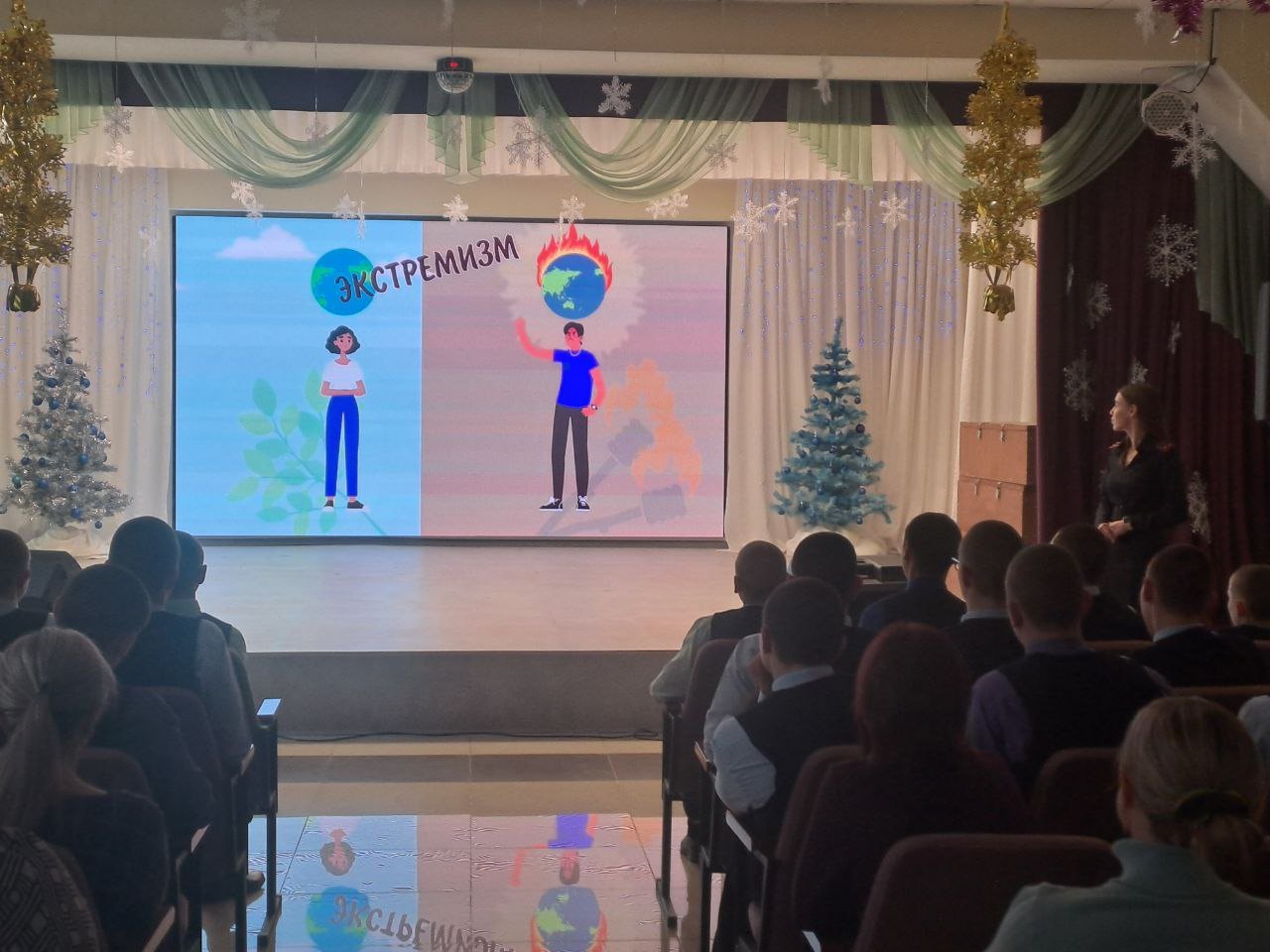 Обучающимся были показаны видеоролики, где рассматривались понятия «экстремизм», «радикализм» и «терроризм» и что грозит за распространение радикальных идей среди молодежи, за размещение на своих страницах в социальных сетях материалов экстремистской направленности. А также один из реальных фактов задержания ребят, которые шли закладывать взрывное устройство.