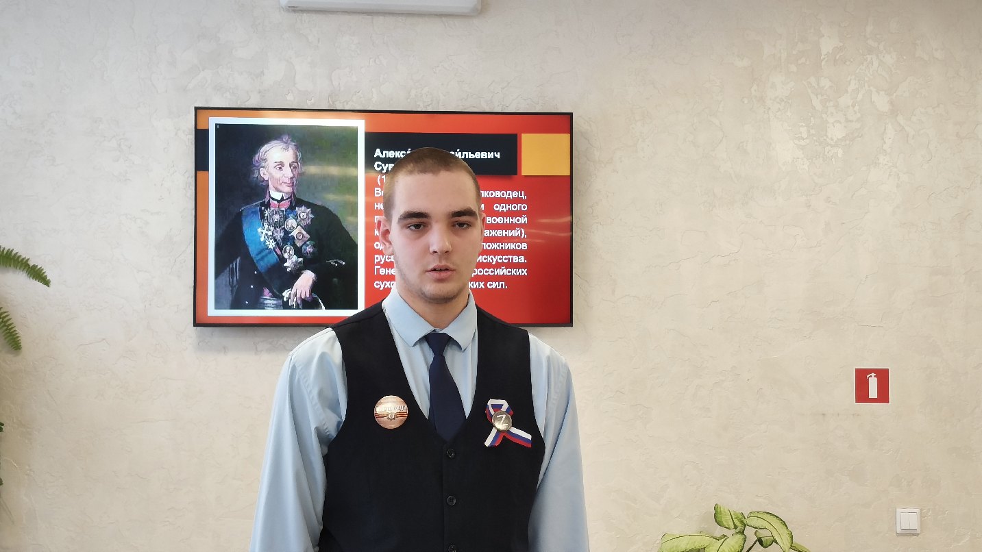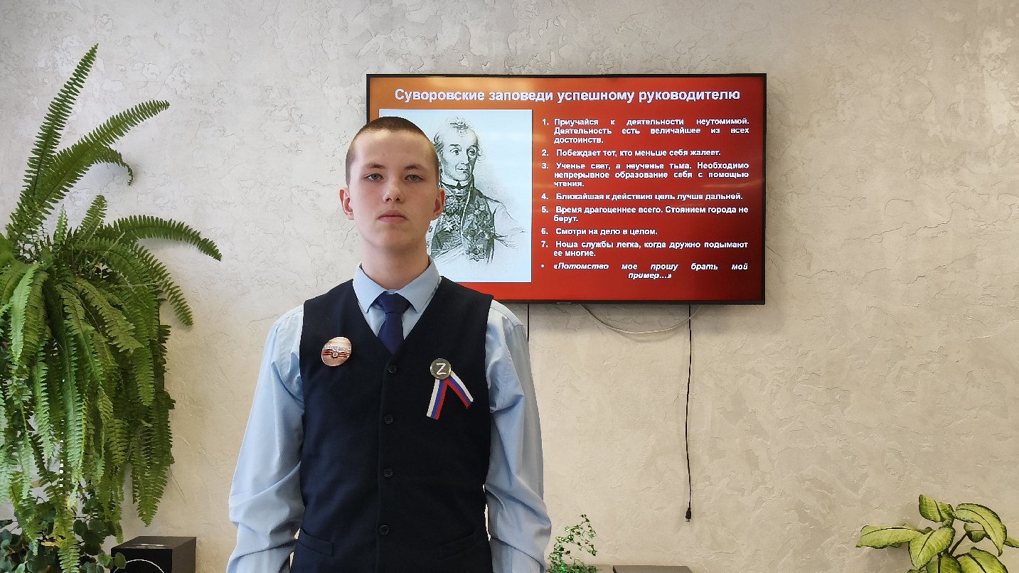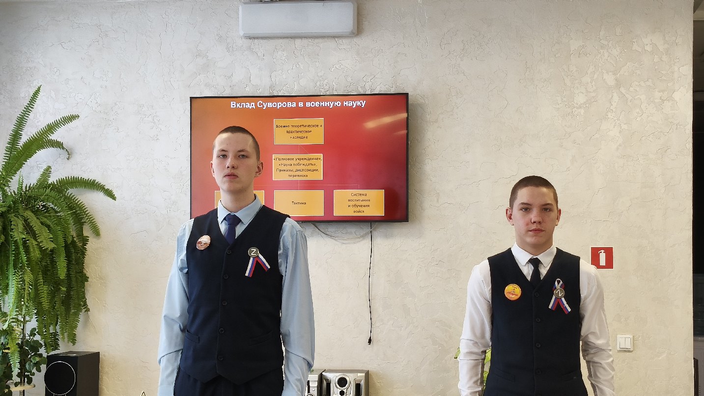 Подростки в ходе мероприятия познакомились с биографией великого русского полководца, который из 99 битв не проиграл ни одной. Ребята отметили такие качества А.В. Суворова, как честность, справедливость, какой вклад внес Суворов в совершенствование военной науки. А.В. Суворов оставил после себя военно-историческое наследие, которое отразилось в книгах «Полковое учреждение» и «Наука побеждать». У главнокомандующего была своя выработанная управленческая система, в которую вписывались «три воинских искусства» по Суворову: глазомер, быстрота и натиск. Ребята познакомились с качествами полководца, которые вызывали любовь и уважение подчиненных: простота в обращении, признании заслуг подчиненных, честность.