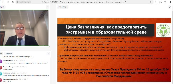 На вебинаре рассматривались и обсуждались различные темы, посвященные профилактике экстремизма в образовательных учреждениях.