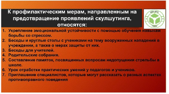 - ◾Создание безопасной среды в образовательном учреждении: разработка и реализация правил поведения, проведение мероприятий по формированию межкультурного диалога и взаимоуважения, размещение информационных материалов.