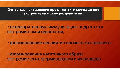 - ◾ Работа с родителями и педагогами: родительские собрания, обучение педагогов методам противодействия экстремизму.